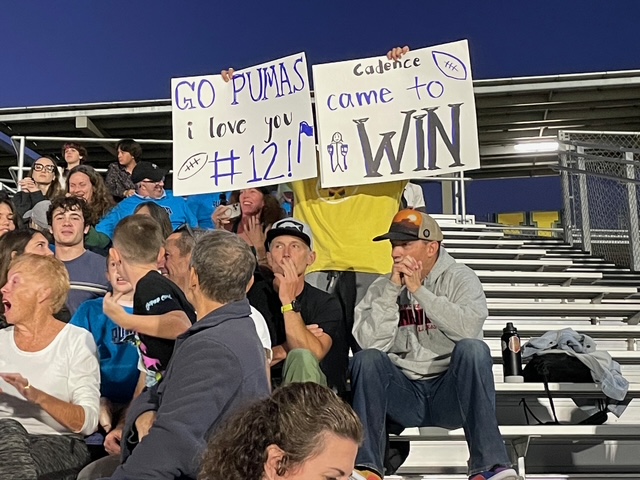 Big thanks to: Ms. Calame and the PCS band who rallied the crowd from the stands, Coaches Mr. Wallraff + Mr. Dobie and their amazing football team who played their hearts out under the Friday night lights, Athletic Director Todd Osborne for outfitting us in Puma-blue shirts and to a wonderful group of staff + faculty who came out to cheer!